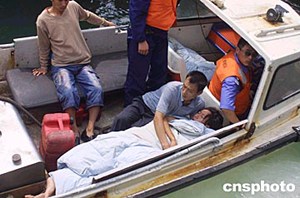 圖為7月8日被解放軍海軍軍艦送回碼頭的獲救船員。作者:呂文正