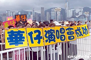 歌影紅星劉德華7月8日在香港尖沙咀星光大道舉行《道地百果園劉德華Vision Tour演唱會2004》記者會,大批“華仔”歌迷帶備標語到場支持,為偶像打氣。作者:鄧慶樂
