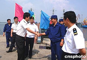 圖為遼寧省海事局的官員感謝搜救的海軍官兵。