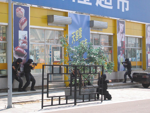 中新網7月11日電 隨著一聲號令,北京警察學院的操練場上,警車呼嘯而出,警燈閃爍,場面驚心動魄。一場帶有實戰性質的,以處置突發事件和反恐怖犯罪活動為主題的京城特警反恐防暴演習拉開戰幕。這是日前發生在由北京市公安局組織的,旨在以練促戰的北京警方反恐防暴演習現場的一幕。