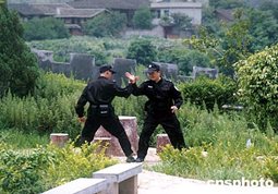 福州市永泰縣梧桐派出所警員冒著盛夏酷暑習練南拳,迎接福建公安系統“大練兵”。作者:鄭祚聲