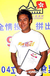 香港藝人兒17日出席在文化中心大堂舉行的立法會選舉開幕典禮。作者:趙振清