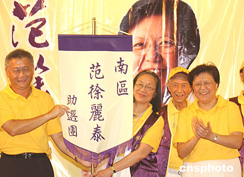 范徐麗泰在成立大會上向助選團頒發隊旗。 中新社記者 趙振清