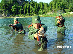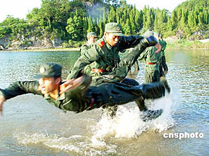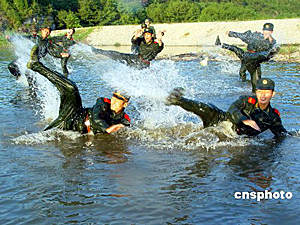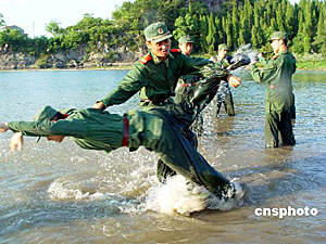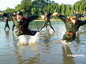 浙江武警官兵水上大練兵