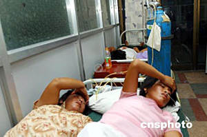 七月十九日,幾名傷者在開封市第一人民醫院輸氧。位于河南開封的中國石油集團下屬某公司一化工廠冷凝器發生爆炸,大量氯化氫氣體泄漏。該廠南側的崗橋村三百七十六名村民出現呼吸道和眼部刺激反應,較重的出現嘔吐和頭痛癥狀不良反應,開封市第一人民醫院和開封縣各醫院已轉移了上百名村民。截至十九日,大部分村民已返家。此次泄漏事故未造成人員死亡。事故中四名責任人已被警方控制。中新社記者:慎重