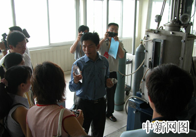 “網(wǎng)上河北行”采風(fēng)團(tuán)參觀訪問(wèn)秦皇島經(jīng)濟(jì)技術(shù)開(kāi)發(fā)區(qū)中的華博晶體技術(shù)有限公司,該公司抓住以藍(lán)寶石為襯底材料的藍(lán)色、綠色和白色LED和LD產(chǎn)業(yè)快速發(fā)展契機(jī),目前已發(fā)展為國(guó)內(nèi)最大的藍(lán)寶石生產(chǎn)基地。圖為該公司負(fù)責(zé)人向記者們展示產(chǎn)品加工過(guò)程。(秦欣攝)