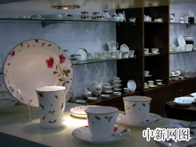 海格雷公司展示廳中的骨質瓷產品。(秦欣攝)