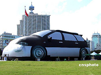 二○○四年七月二十二日,福建福州市五一廣場出現一巨型充氣汽車模型。據悉,那是商家為即將在此地舉辦的車展造勢。王東明 攝