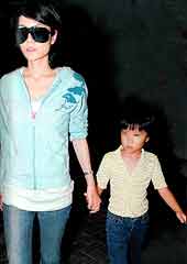 王菲顯然聽到,一臉尷尬地拖著童童到頭等艙休息室等候。記者看到她一臉疲累,坐在椅子上閉目養神。下午5時15分,登機廣播傳來,王菲立即起身帶女兒到柜臺辦手續。