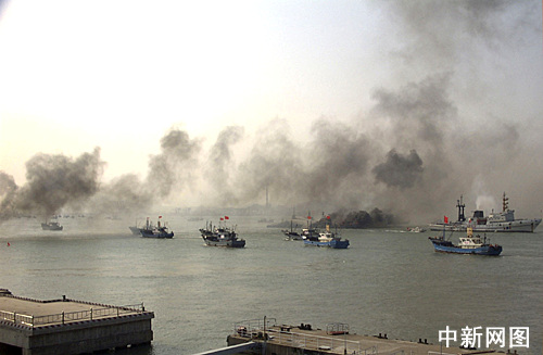 中新網漳州7月25日電 (記者 林國瑞)七月二十四日下午三時至四時三十分,福建省海上支前保障實兵演習在漳州港舉行。