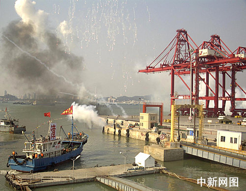 三時左右,隨著三發紅色信號彈升空,位于廈門灣南岸的漳州港海面上,展現出一幅新時期地方政府和民眾擁軍支前的波瀾壯闊畫卷:民兵船運分隊快速集結并與部隊對接,武器裝備和人員有條不紊地進行裝載;海上警戒、勤務保障、通信、供油供水等分隊同時跟進保障,醫療救護所、船舶維修與器材供應站等也相繼開設進行保障;面對阻撓人民解放軍部隊裝載的“敵機”,民兵高炮和導彈分隊迅速實施對空射擊;一條條水龍迅速撲滅中彈著火的船只……