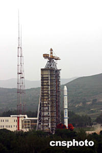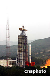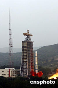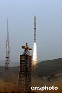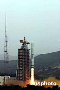 中國“雙星計劃”的第二顆衛星——“探測二號”,二十五日下午在太原衛星發射中心由“長征二號丙”改進型運載火箭成功發射升空。中新社記者孫自法攝