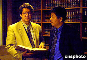 趙燕在紐約的律師里根先生(左)、孫瀾濤先生(右)當地時間七月二十六日接受記者采訪時表示,趙燕至少應當得到五百萬美金以上的賠償。作者:趙海燕