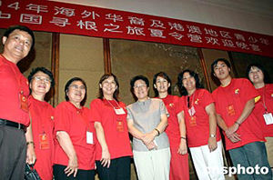 七月二十七日晚,國務院僑辦主任陳玉杰在北京國賓酒店《中國尋根之旅夏令營》領隊歡迎宴會上強調;國僑辦將加大華文教育工作力度。圖為陳玉杰主任與領隊們合影留念。中新社記者:史利