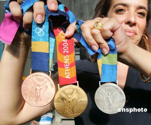 7月26日,2004年雅典奧運會的獎牌揭開神秘面紗。據悉,目前已經約有3000枚獎牌投入制造。Ic/cnsphoto 攝