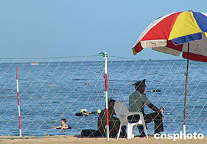 七月下旬,中國各地迎來了一年中最炎熱的日子。在中國北方著名的避暑勝地北戴河,一名武警戰士正在海濱浴場執勤。北戴河曾經是中國高層領導夏季辦公和休假的地方,這里一度被輿論譽為“夏都”,不過自去年開始,中央領導人和中央機關干部夏季不再到這里辦公。作者:齊彬