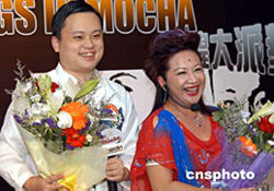 瘋魔全球的另類偶像孔慶翔與家燕姐,三十一日在澳門摩卡角子機娛樂埸舉行輝煌派對,為他們八月份開拍的電影《我阿媽發仔瘟》作宣傳。作者:梁永強