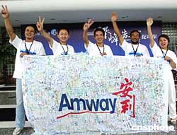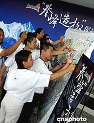 國家環保局九月將舉行“登峰造極”清掃珠穆朗瑪峰大型環保活動,安利(中國)日用品公司,八月四日在新疆安利營銷人員中舉行為中國環保做貢獻簽名活動。中新社記者:宋吉河