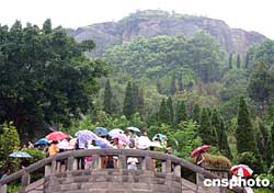 二○○四年八月四日,冒雨前來鄧家祖墳參觀游覽的海內外游客絡繹不絕。鄧家祖墳位于四川廣安佛手山,是鄧小平家族先孺們的墓園,鄧小平的祖母、母親等人均埋于此。作者:郭晉嘉