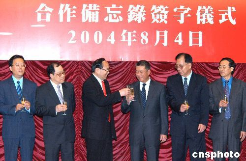八月四日,中國人民銀行副行長李若谷與澳門金融管理局主席丁連星在澳門特區政府總部多功能廳分別代表雙方簽署澳門銀行辦理個人人民幣業務合作備忘錄,澳門特別行政區行政長官何厚鏵等出席簽字儀式。作者:梁永強