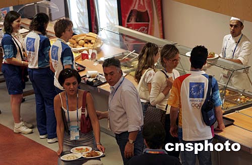 在雅典奧運會主新聞中心內,開設眾多風味的美食供世界各地的記者選擇,只不過都是“西餐”,而沒有中餐等東方風味飲食。中新社記者:任晨鳴