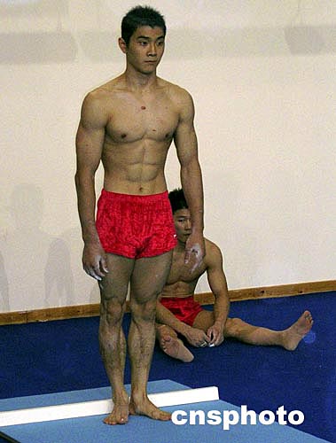 當地時間8月7日下午,世界冠軍--中國男子體操隊的主力選手邢傲偉等在雅典訓練,備戰即將開始的比賽。作者:沈晨