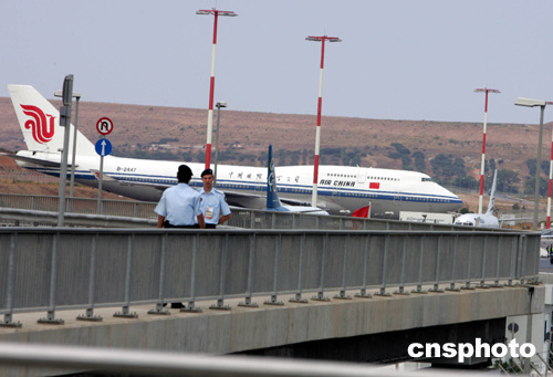 當地時間8月8日下午,運載中國奧運軍團的中國國際航空公司的波音747專機平安飛抵雅典機場。中新社記者:任晨鳴