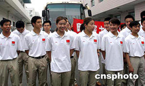 中新社北京八月八日電題:中國體育代表團出征花絮:輕松笑羞澀人離別情