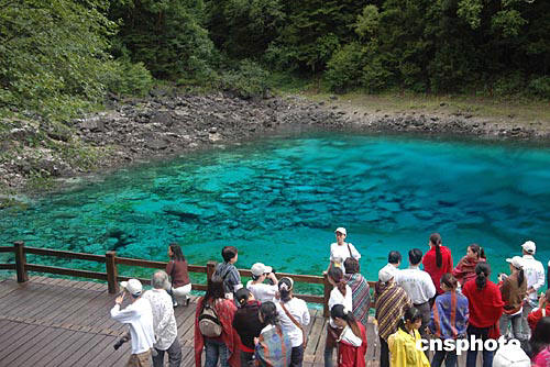世界文化遺產、著名的四川九寨溝知名度越來越大,暑假期間中外游客慕名涌來,被其天造美景所傾倒,爭相攝影留念。