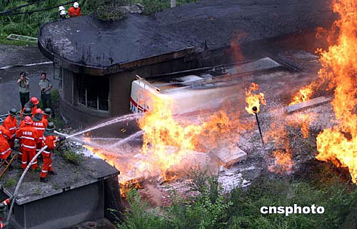 新華網記者報道說,有十多輛消防車緊張地進行滅火,還有消防車陸續趕到。但火勢并沒有得到明顯控制,火勢很猛,濃煙直沖天空。