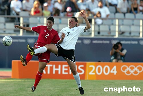 “比分擴大為二比0之后,我們才真正地意識到場上的中國女足存在著諸多非常嚴重的問題。”資源記者、主持人董路分析說,“首先是體能狀態極差,才二十幾分鐘許多球員就已經在氣喘吁吁了,顯然賽前訓練缺少必要的調整和恢復;其次前場球員發動進攻的時候,整個后衛線依然停留在本方禁區前沿,三條線之間的距離如同北京到雅典一樣遙遠;再有當對方進攻的時候,中國女足薄弱的中場抵擋不住,后衛一味退守而且幾乎沒有緊逼盯防,經常眼睜睜地看著德國姑娘或帶球疾進或自由穿插……”