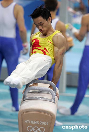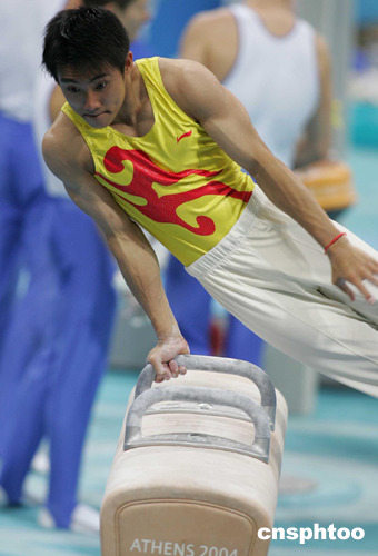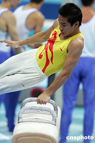 中國男子體操隊員楊威在鞍馬訓練中顯得信心十足。中新社記者:毛建軍
