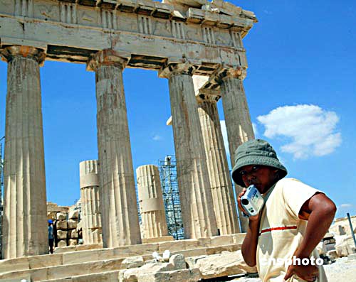 炎炎夏日,來自世界各地的游客紛紛來到雅典衛城游覽,古希臘精美的建筑深深地吸引著他們。作者:王瑤