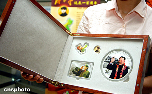 由澳大利亞與新西蘭聯(lián)合鑄造發(fā)行的鄧小平誕辰一百周年紀(jì)念彩色金銀幣在常州面世。該套紀(jì)念幣每套一金三銀,金幣采用純度99.99之8克純金鑄造,圖案為“青年鄧小平”;銀幣采用99.9之白銀鑄造,由澳大利亞珀斯鑄幣局聯(lián)同新西蘭庫(kù)克群島聯(lián)合鑄造。其中“鄧小平及天安門(mén)”重500克,中國(guó)共發(fā)行500套。作者:蔣振江