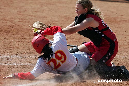 中國女壘4:2勝加拿大隊 郭佳搶壘得分