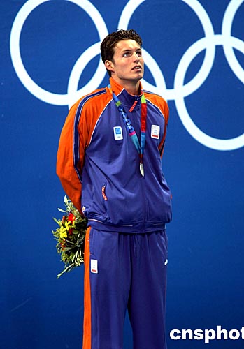 當地時間8月16日晚,荷蘭的游泳超級世界明星霍根班德,在雅典奧運會男子100米自由泳決賽中獲得亞軍。中新社記者:任晨鳴