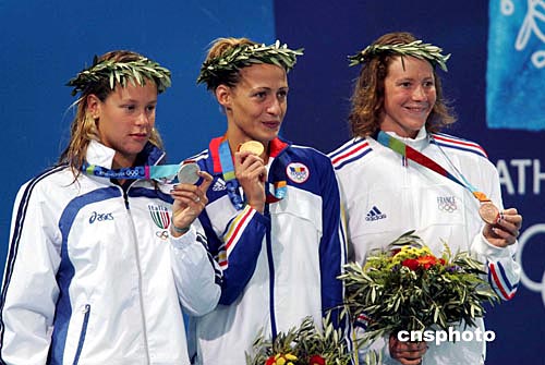 當地時間八月十七日晚,羅馬尼亞選手卡美麗婭獲得雅典奧運女子二百米自由泳金牌。中新社記者:毛建軍