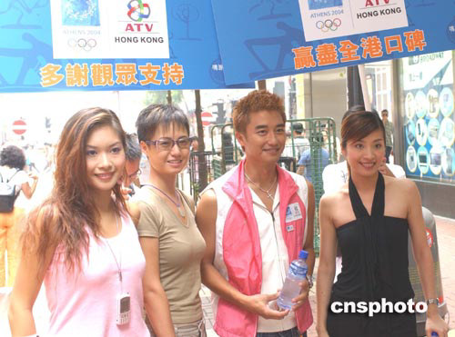 香港藝人18日在銅羅灣鬧市為亞洲電視奧運節目造勢。中新社記者:趙振清