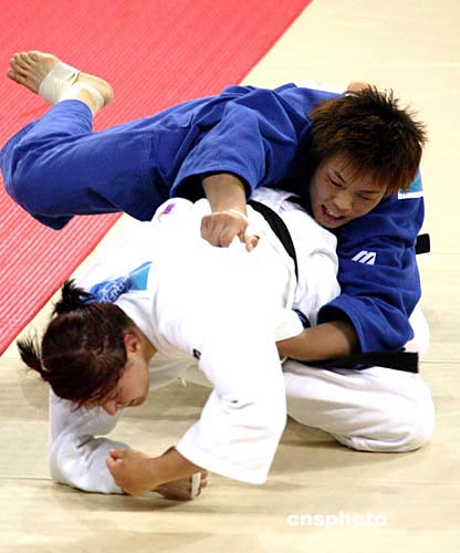 圖為劉霞在比賽中戰(zhàn)勝古巴選手。