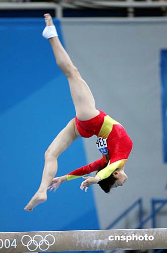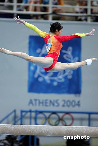 張楠在雅典奧運(yùn)體操團(tuán)體賽預(yù)賽中 (2004-08-16)