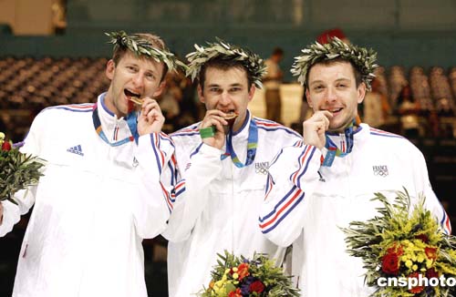在當(dāng)?shù)貢r間8月19日舉行的男子擊劍團體比賽中,法國三名劍客Gael Touya, Damien Touya, Julien Pillet榮獲冠軍。