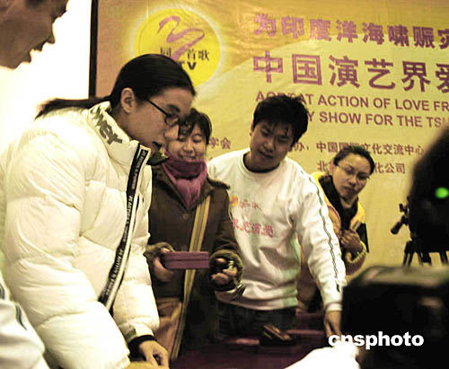 來自四面八方的社會各界人士六日在北京參加“中國演藝界愛心大行動為印度洋海嘯賑災(zāi)義演”。