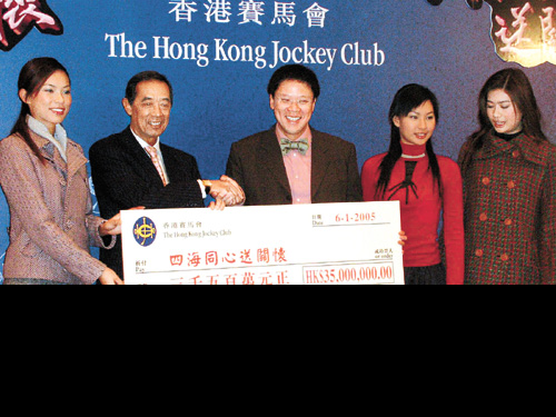 中新網1月7日電 據香港大公報報道,應屆香港小姐徐子珊、朱慧敏及符思思,昨(6)日出席于香港賽馬會舉行的支票移交儀式。馬會設于不同地點的善款箱,共籌集得超過三千五百萬港元的善款,連同“無線”制作的《四海同心送關懷》節目及政府在大球場舉行的籌款活動善款,預計已籌得超過一億港元。所有善款將捐給五個慈善機構,分別是香港紅十字會、香港世界宣明會、樂施會、聯合國兒童基金會及救世軍。