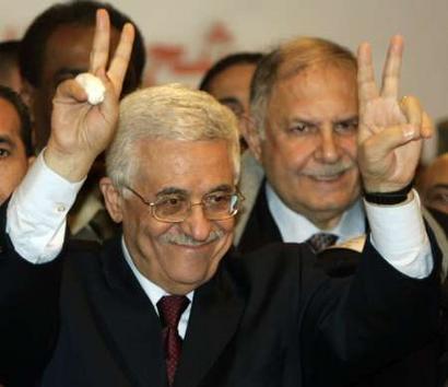 當(dāng)天深夜,法塔赫為阿巴斯獲勝在拉姆安拉總統(tǒng)府舉行慶祝會(huì)。阿巴斯?jié)M面笑容,并舉起雙手向數(shù)百名支持者打出兩個(gè)“V”字手勢(shì)。