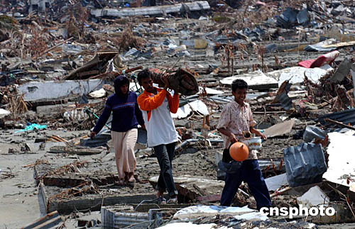 圖:印尼班達亞齊災民陸續回到災區整理家園