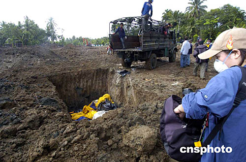 圖:班達亞齊義工協助埋葬死難者尸體