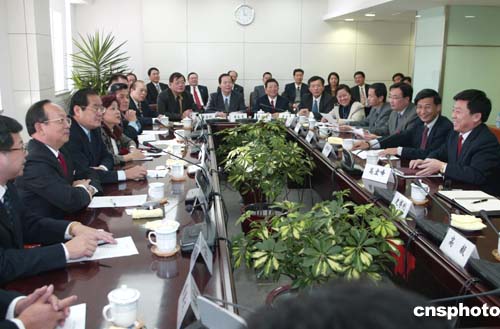 圖:民航總局與推動臺商春節(jié)包機參訪團會談