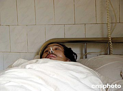 河南宜陽縣瓦斯燃燒事故中一受傷礦工正在縣醫院救治。作者:胡珂