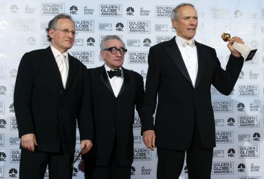 克林特-伊斯特伍德(右)、馬丁斯科塞斯、邁克爾曼恩(《飛行者》制作人)