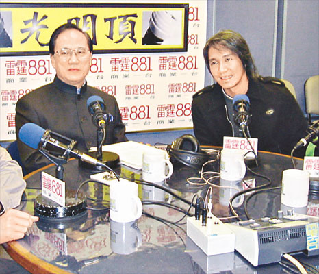 星爺與曾蔭權(quán)前晚做電臺(tái)節(jié)目,兩人惺惺相惜甚為投契,遲到五分鐘的星爺,抵達(dá)后即馬上沖入直播室,一番寒暄后,曾蔭權(quán)就大贊星爺,連贈(zèng)送高帽,笑指得悉要與星仔做節(jié)目,隨即謝絕一切應(yīng)酬,以免錯(cuò)失機(jī)會(huì)。